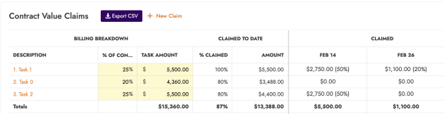 • Ability to delete tasks from project claims.