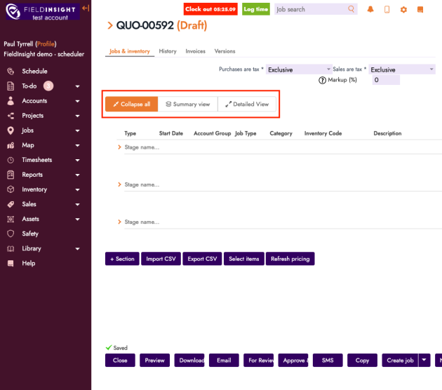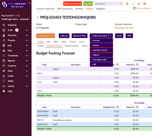 Variation Quotes now support Collapse / Expand controls for sections (similar to Project Budget):