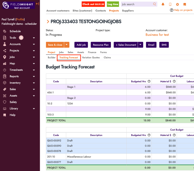 Makes it easier for project managers and supervisors to review forecast performance at a glance—without needing manual calculations or jumping between budget views.