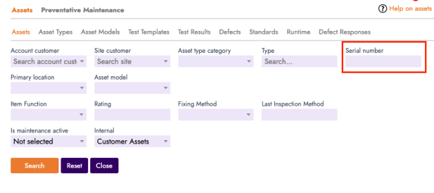 Assets — Serial Number in Advanced Search