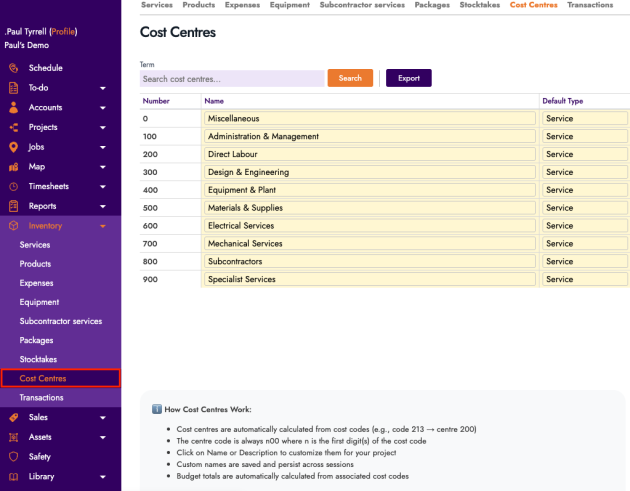 Lets you create structured internal project budgets and experiment with cost code and cost centre structures ahead of the full Project Management release.