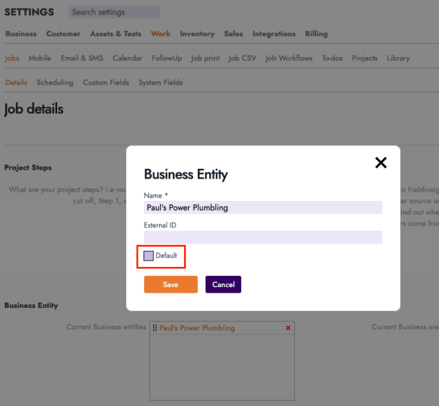 The Default checkbox on a Business Entity can now be unchecked.