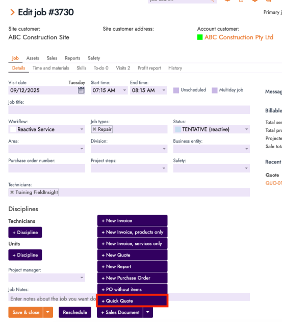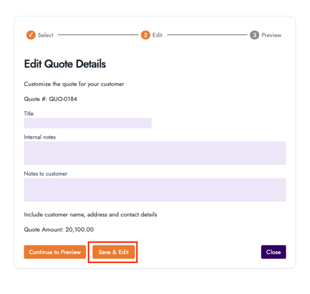 A new Save & Edit button has been added when creating a Quick Quote. After saving, it automatically opens the full Quote editor for refinement.
