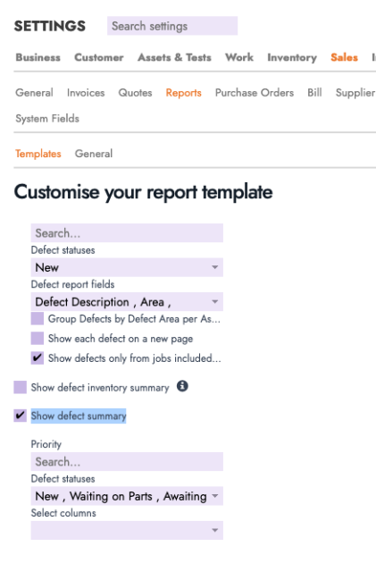 A configurable Defect Summary Table you can include in Sales report templates. It supports: