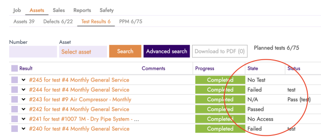 The STATE badge now uses colour by outcome (e.g., Red = Fail, Green = Pass, etc.).