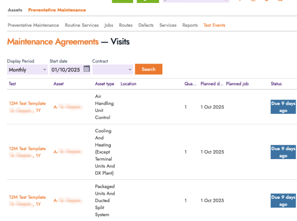 A master list of all test events within the Maintenance Agreement summary dashboard to show incomplete test defects across sites.
