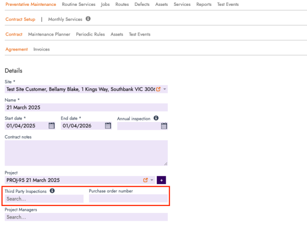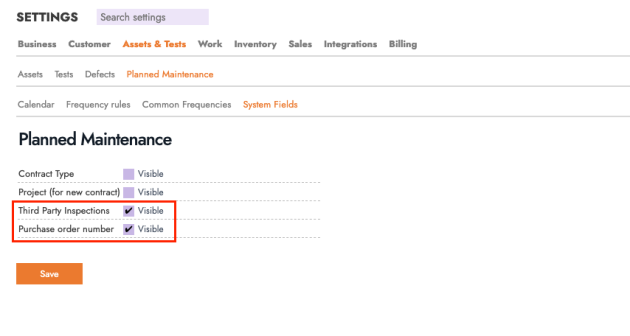 Visibility toggles for PPM fields: Third-Party Inspections and Purchase Order Number.